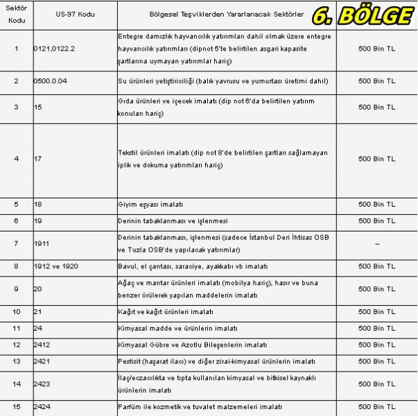 Genel teşvik uygulamaları hariç olmak üzere, sadece 6. Bölgede gerçekleştirilecek yatırımlar için düzenlenen teşvik belgelerinde öngörülür.